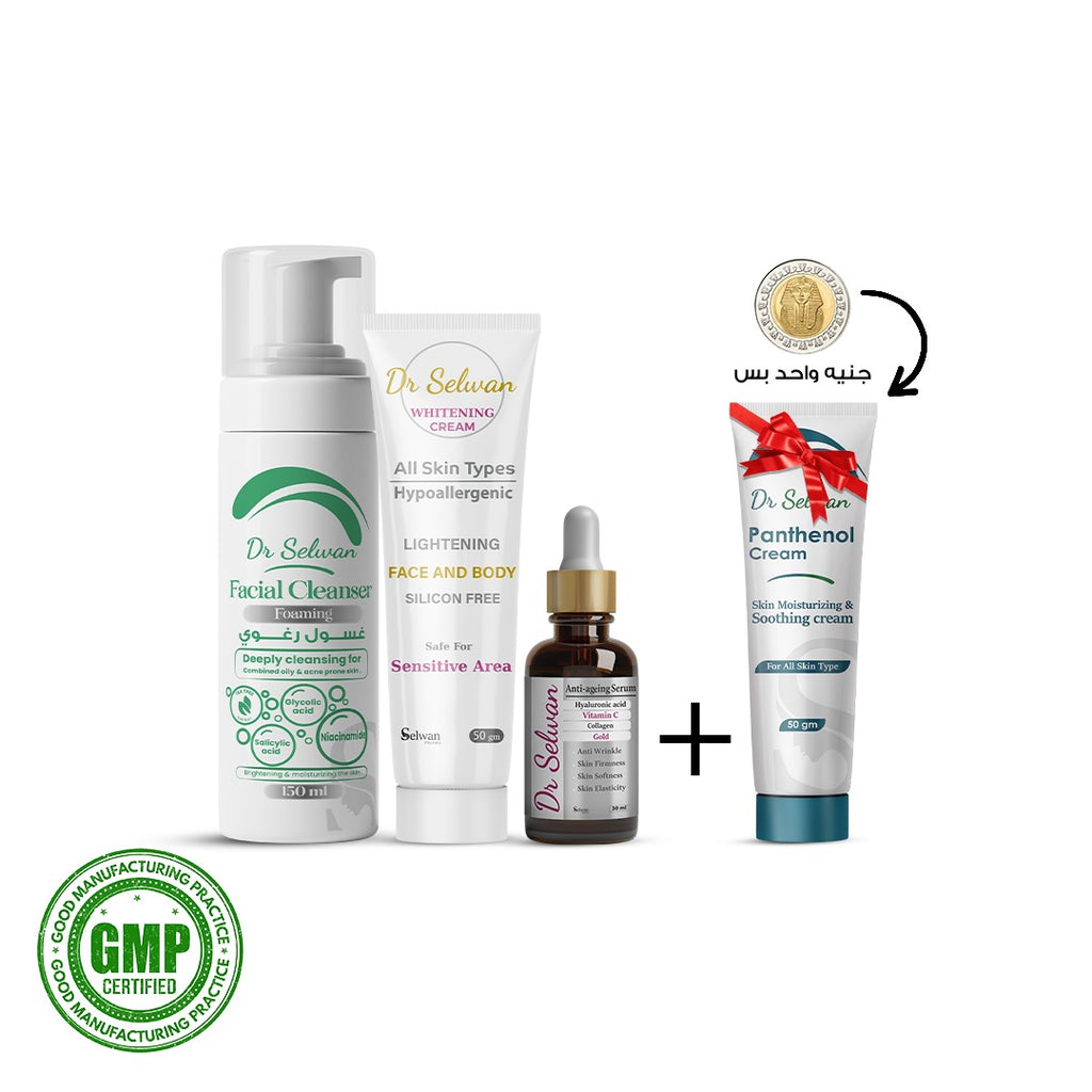 Bring back your natural glow with a simple, safe routine. The Back to Glow Bundle includes a foaming cleanser, whitening cream, and anti-aging serum, all MOH-approved and enriched with powerful active ingredients.